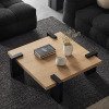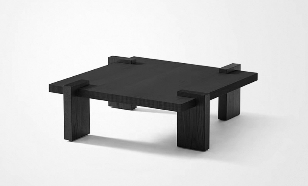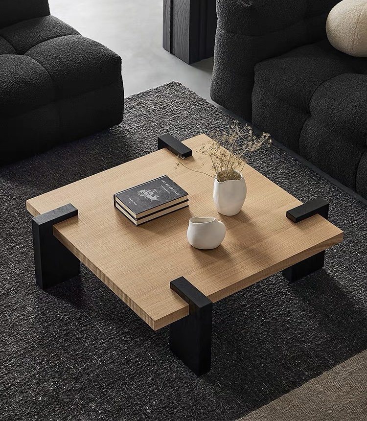 ⦁ Chân bàn: Thiết kế độc đáo với bốn chân bằng gỗ sơn đen, vuông vức, gắn vào bốn góc bàn theo cách tạo điểm nhấn thị giác mạnh mẽ.