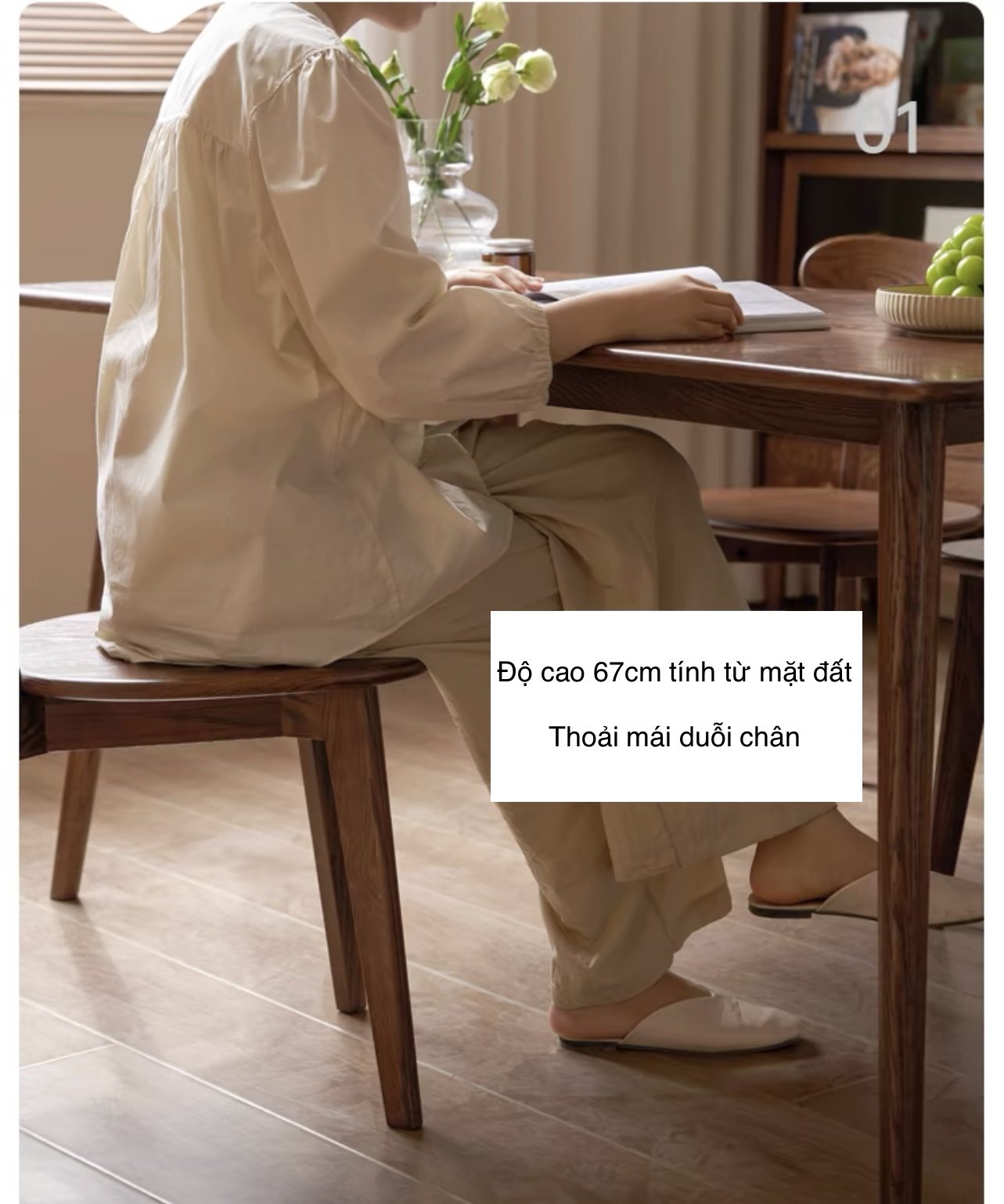 ⦁ Chân bàn vát nhẹ theo phong cách Mid-century Modern, vừa tạo sự thanh thoát vừa đảm bảo độ chắc chắn.