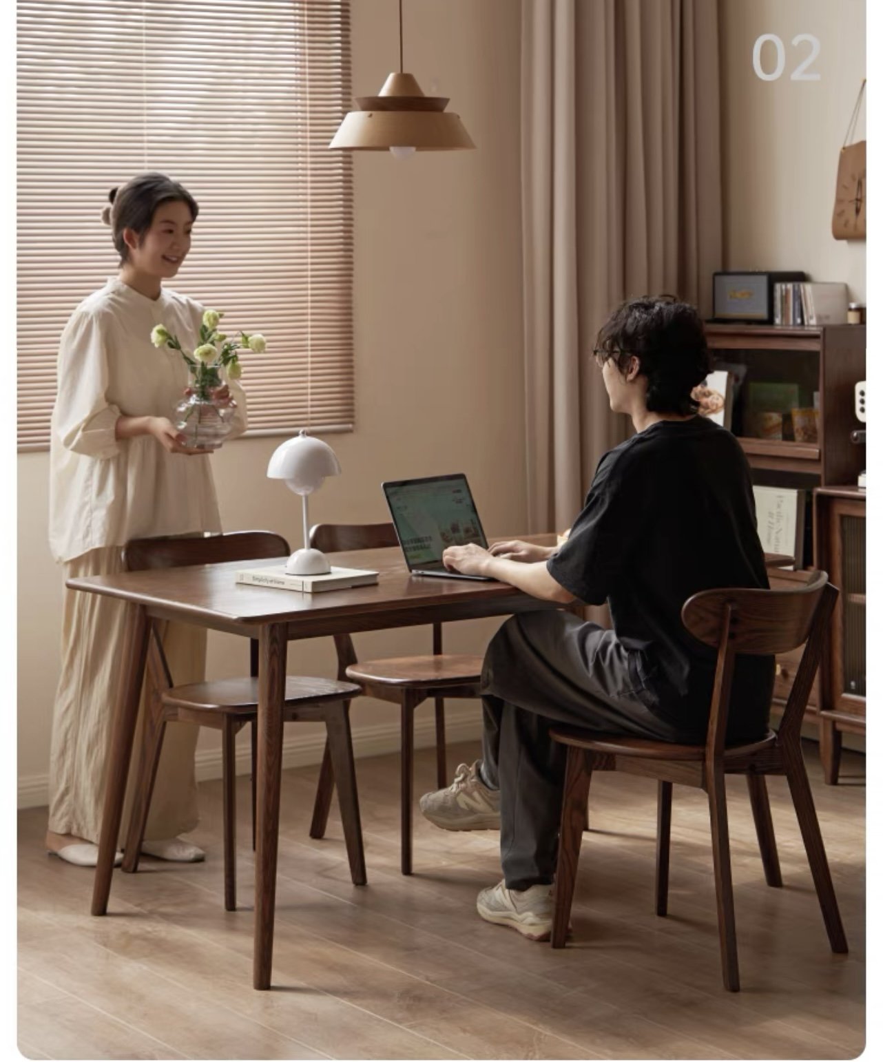 ⦁ Bàn ăn: Kết hợp với ghế gỗ cùng tông màu hoặc ghế bọc nệm để tạo không gian ấm cúng, sang trọng.