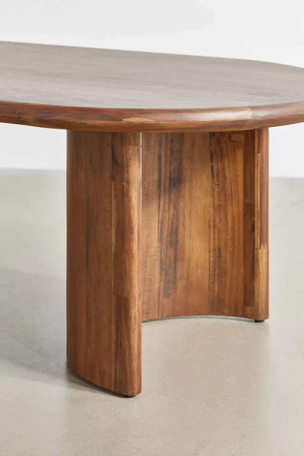 Phần chân bàn là điểm nhấn đầy tinh tế với thiết kế dạng khối cong đối xứng, mang lại sự vững chắc nhưng không thô cứng. Những đường cong này tạo hiệu ứng thị giác ấn tượng, vừa phá cách nhưng vẫn duy trì sự cân đối trong tổng thể. Khi ánh sáng chiếu qua, bàn Hazel không chỉ là một món đồ nội thất mà còn trở thành một tác phẩm điêu khắc tràn đầy sức sống.