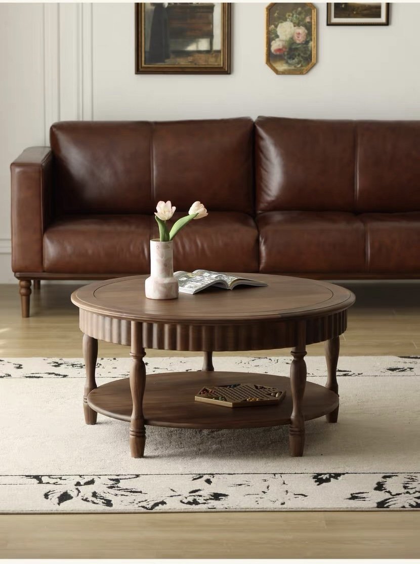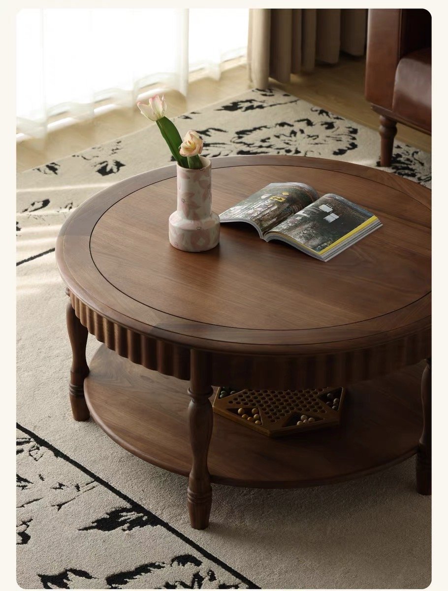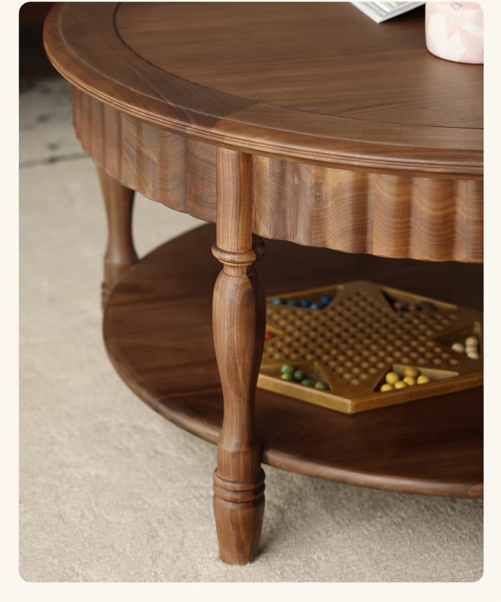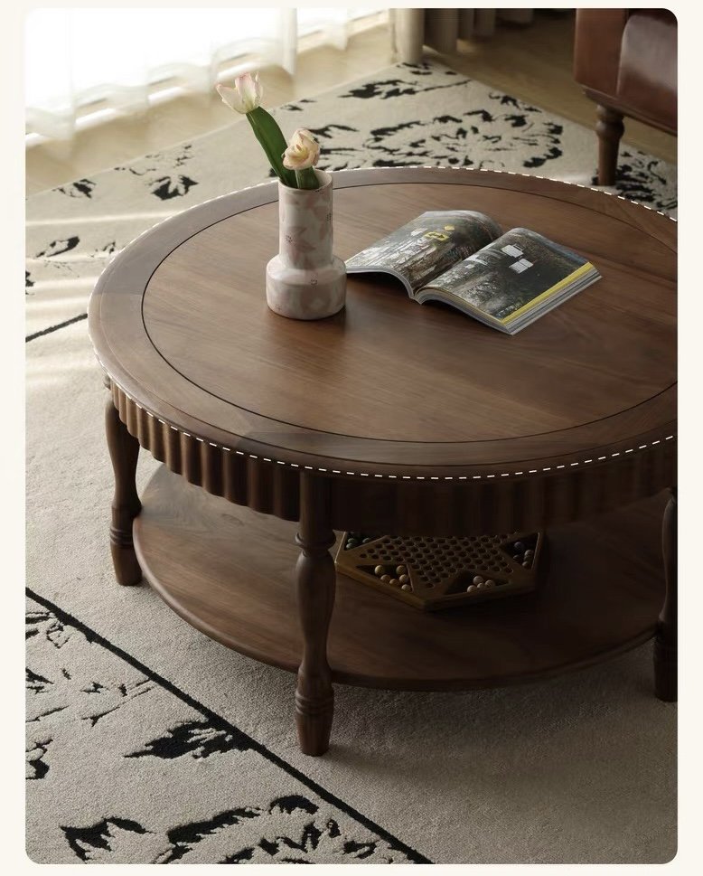 Thiết kế chân tiện và mặt bàn bo tròn mang vẻ đẹp thanh lịch, giúp bàn hòa mình vào không gian cổ điển mà không bị nặng nề.
