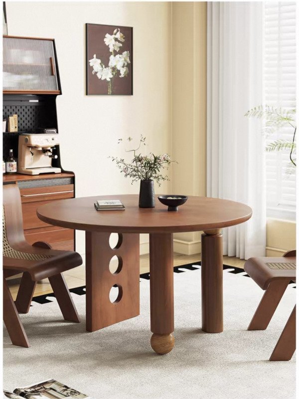 Thiết kế của sản phẩm lấy cảm hứng từ hình học tối giản tạo nên một hình dáng vừa mềm mại vừa vững vàng. Tông màu gỗ nguyên bản và màu nâu óc chó giúp sản phẩm dễ dàng hòa quyện với nhiều không gian nội thất khác nhau, từ hiện đại đến cổ điển.