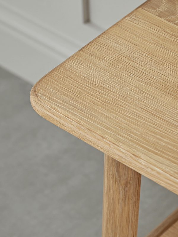 • Chân ghế hơi vát nhẹ, tạo độ vững chắc nhưng không thô cứng. Thanh giằng ngang phía dưới không chỉ tăng thêm độ ổn định mà còn là một điểm nhấn tinh tế trong thiết kế.