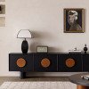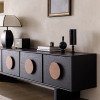 Những tay nắm gỗ tròn sắc nét tựa như mảng nhạc trầm ấm, tô điểm hoàn hảo trên nền mặt gỗ màu đen huyền.