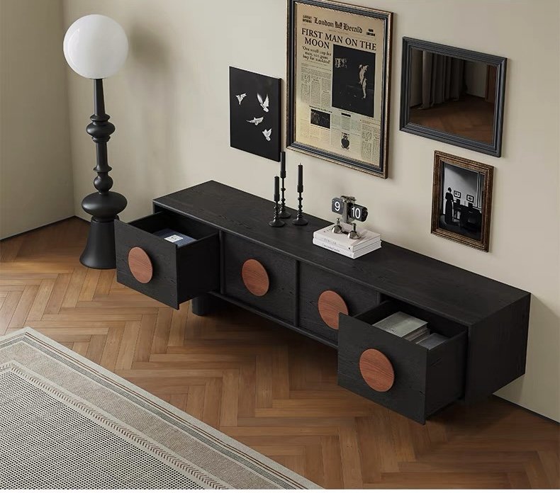 Thoải mái đặt TV kích thước lớn, loa, đèn bàn và các món décor cao cấp mà không lo thiếu diện tích.