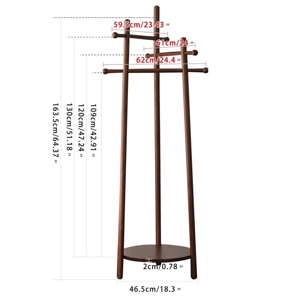 Kiểu dáng: Hình trụ đứng với chân đế tròn, có nhiều thanh ngang để treo đồ